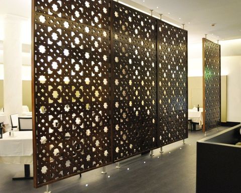 con paneles de celosia, son madera, mdf, pvc, metacrilato, alumino, acero inox, latón y bronce.